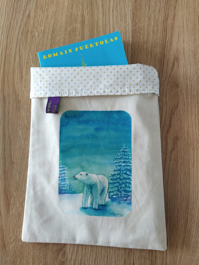 A partir de l'une des mes aquarelle, une planche de transfert est imprimée. Je chauffe alors le transfert sur le tissu avec une presse à chaud. Le transfert pénètre complètement dans le tissu.